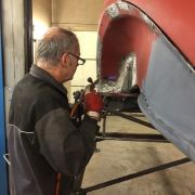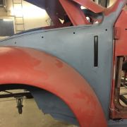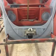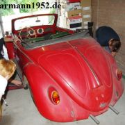 64450 kilometers, that was precisely the count you could read the Hebmüller's speedometer. On that sunny June morning my family started activities to bring a nearly forgotten vehicle back into life. Since 1969 the Hebmüller slept under a dustcover in the garage of my parents home, apart from some years for show at a local Volkswagen dealer. Since as a teenager my father had dreamed of a Volkswagen Hebmüller, but more than a leaflet and an imagination of his own car in future was not possible for a boy in the still young founded Bundesrepublik. As an apprentice and later mechanic for a Volkswagen garage he still came a little bit closer to his wish, but with a repairman's small wage, there was no chance for any luxury. Until 1961, when my father's former employer offered him a used Hebmüller to buy. A painter had given the vehicle in payment for a new car. The car had already a 12 years history and previous owners (scrap dealer, confectioner, painter) had given their personal taste to the vehicle: American bumpers, heart shaped tail lights, all sorts of contemporary chrome trim let the car shine with the model development of Volkswagen latests design movement. Originally in brown color (we researched at Volkswagen Stiftung Wolfsburg) without any extras, delivered to Volkswagen distributor Gottfried-Schutz-Essen, the Hebmüller was now painted in bold red combined with green leather seats testified the green intermediate phase of the car. My father, the fresh VW-Hebmüller owner, proudly enjoyed his new freedom with the convertible and numerous trips, for example to the Nürburgring and the Eifel landscape, encouraged the owner's desire to travel with his girlfriend, my later mom. So in my first years of childhood I took place on the rear seat of the Hebmüller until 1969, when the TÜV prohibited a further operation due to flagrant defects. My father did not want to part with the Hebmüller, so the car found its place in our garage. Over the years, other things were always more important and the Hebmüller kept the destiny of a sleeping beauty. Until the year 2016, when my now 81-year-old father decided to give the car to me and my husband. On a June morning the trailer of the classic car specialist parked at the front of my parents home and the Hebmüller was prepared for the journey under the curious eyes of the neighbourhood. A neighbour said benevolently that its finally good that this rotten car gets now to the scrapyard. We are looking forward to the astonished face of this man, if the Hebmüller will shine again in its old glory. My father had given the car a contemporary modernization. A flashing light system replaced the semaphores, larger "safer" taillights, new mighty 60s fenders, Talbot mirrors and a replacement engine with 30 hp graced the car now. After the dismantling and inventory of the Hebmüller, we had to give up our plan to leave the car mostly in its latest shape. The bad condition of the body, two unprofessional accident repairs, a bad paintwork, rotten wood made the list of tasks ever longer. As a fortunate circumstance the Hebmüller specific parts were mostly complete. We decided to leave some quirks, but when the semaphore shafts emerged by removing the paint and filler layer, the decision to reactivate the original look of the car as far as possible was made. The Telefunken IA50 mounted into the car was given to a specialist for tube radio restoration, who restored it very well. For us, a exciting time began and we are very intensively involved with the Hebmüller and the history of early Volkswagens. Fortunately, we met Claus Missing and Sascha Haun, who helped us with their technical experience, parts and friendship. We have to thank a lot of people, who are engaged in this project and without their craftsmanship and engagement we would not get the car back into a perfect condition. Our aim is to present the car at the Karosserie Hebmüller meeting in August 2019.