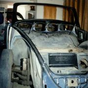 There is not much history known on this one but it is however interesting. How this one ended up in the States is unknown. At a certain point, the Heb was a Penguin, Black with Ivory sides. As with most of the Hebs, a resto was needed so the car was dismantled. All the parts went in boxes and the body and floorpan got the needed attention. On older picts from the resto, we could hardly see a hand painted nr on the bulckhead as on Heb 316. Only the first digit "2" is visible. As time goes by, the Heb was restored complete and put in a private museum, hardly used. At a certain point, the Heb was offered for sale by the respeced Randy Carlsson. As for the new owner from Indonesia, and heaving 2 other Hebs, he used this one to be stationed in Europe so he can attend the shows with his own Heb. The most interesting thing on this Hebmüller is that the ID plate- Vin Tag was taken from the car for the resto years ago and was never put back on it. After the sale, we all toughed it was lost for ever but that was without Steve Dressler who hunted down the previous owner and the man who helped on the resto. Guess what? The vin tag was still in a box in the workshop and now it is in Steve's hand to be handed over to the owner soon. (PS)